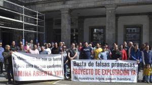 "Lo único que queremos es trabajar", claman los mineros de Vega de Rengos en su cuarta concentración en Oviedo "Tenemos un carbón...